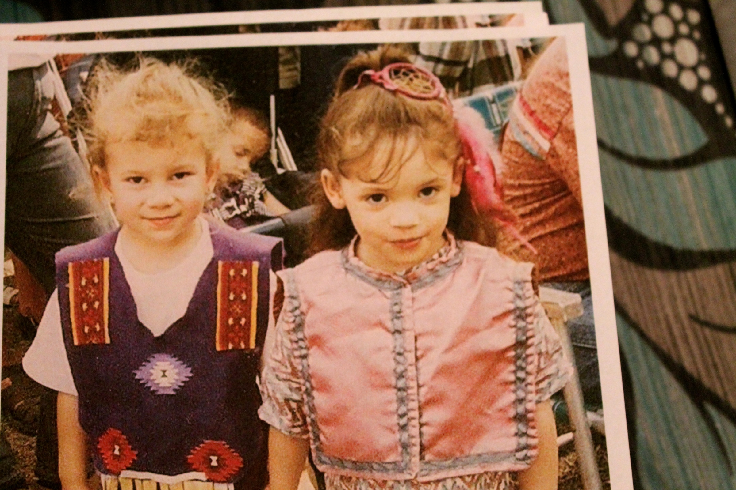 A young Faith Hedgepeth (right) participates in her first pow wow. Faith was an active member of the Haliwa Saponi tribal community throughout her life.