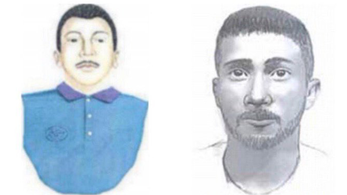 These police sketches show the “Fairmount Park Rapist”, a Hispanic male approx. 5’8″ in height with dark hair and eyes. Notable features include scars on his chest and shoulder and broken English / a thick Central or South American accent.