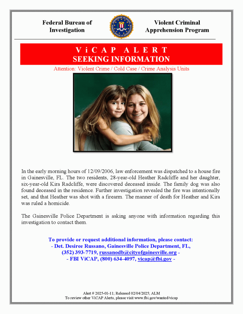 HEATHER AND KIRA RADCLIFFE – GAINESVILLE, FLORIDA (FBI.gov)