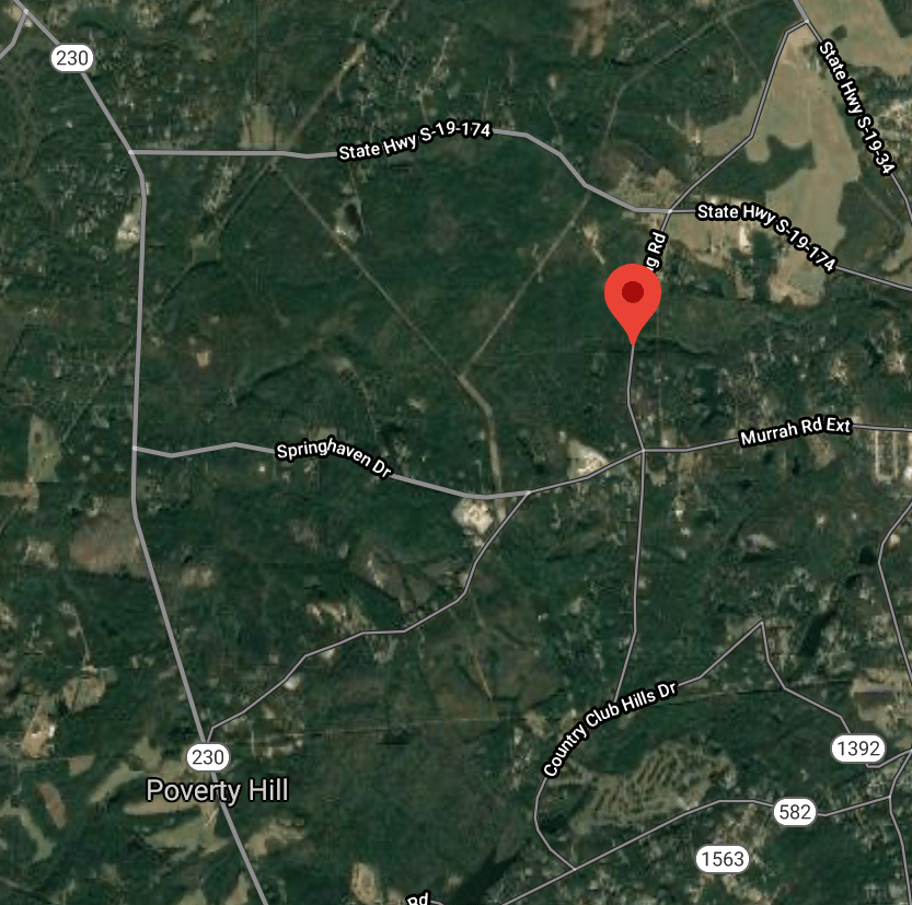 Marked: Mealing Rd, the rural road along which Tammy lived. She disappeared from her home, and the heavily wooded surrounding areas were subsequently searched by law enforcement and civilian volunteers alike.